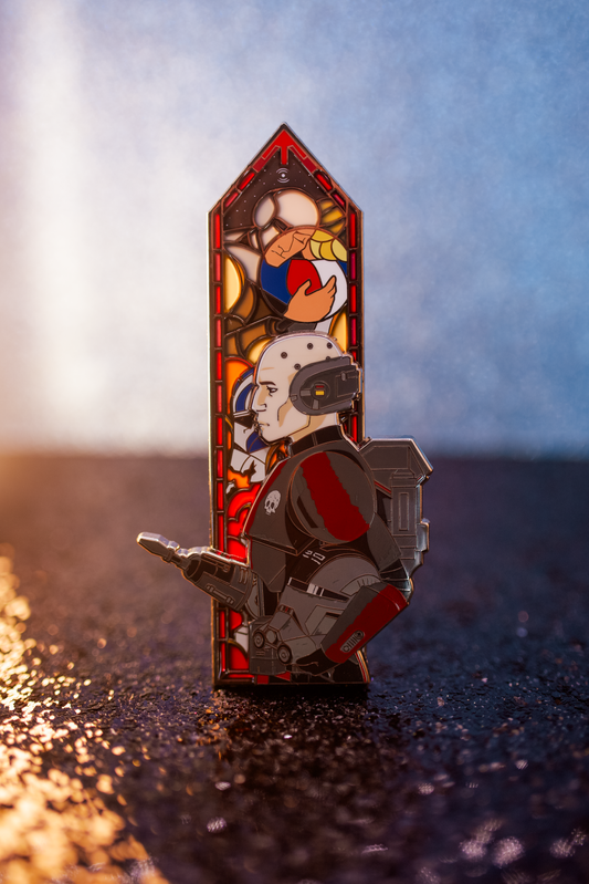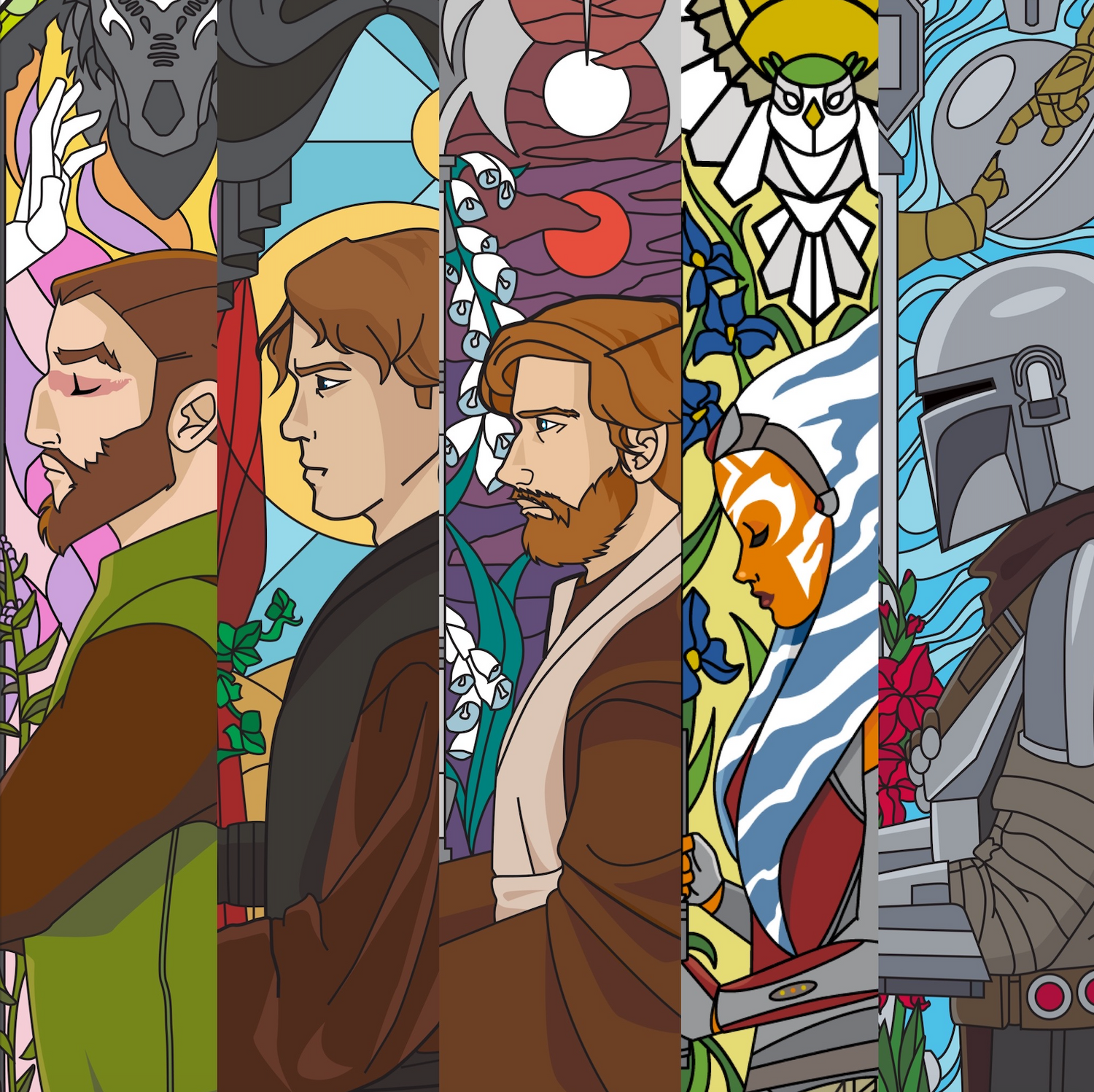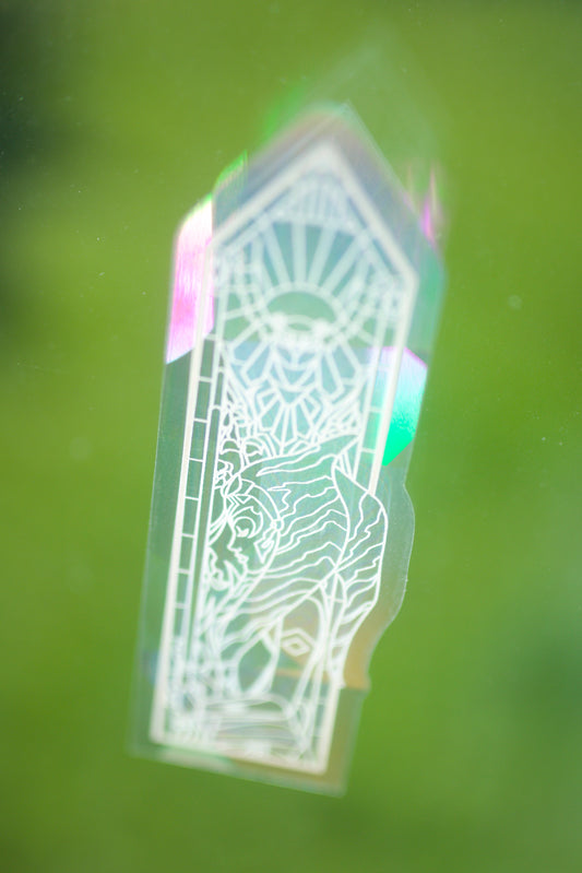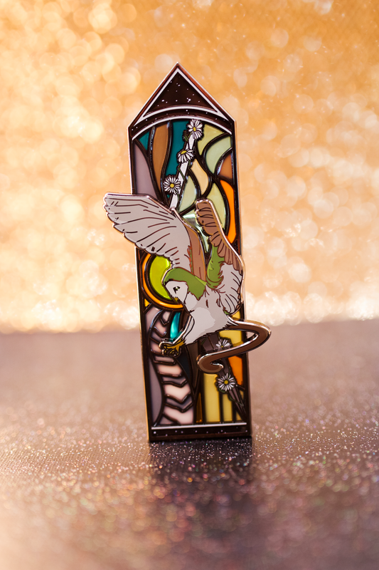 Our main series is the Triptych Windows series, which uses stained glass backers to tell the symbolic journey of the character featured on the topper. Storytelling through art means a lot to us, and we hope you enjoy adding our creations to your collections.