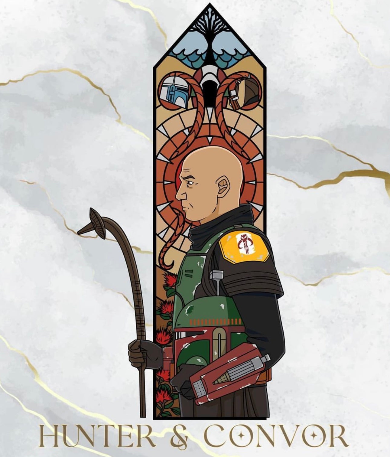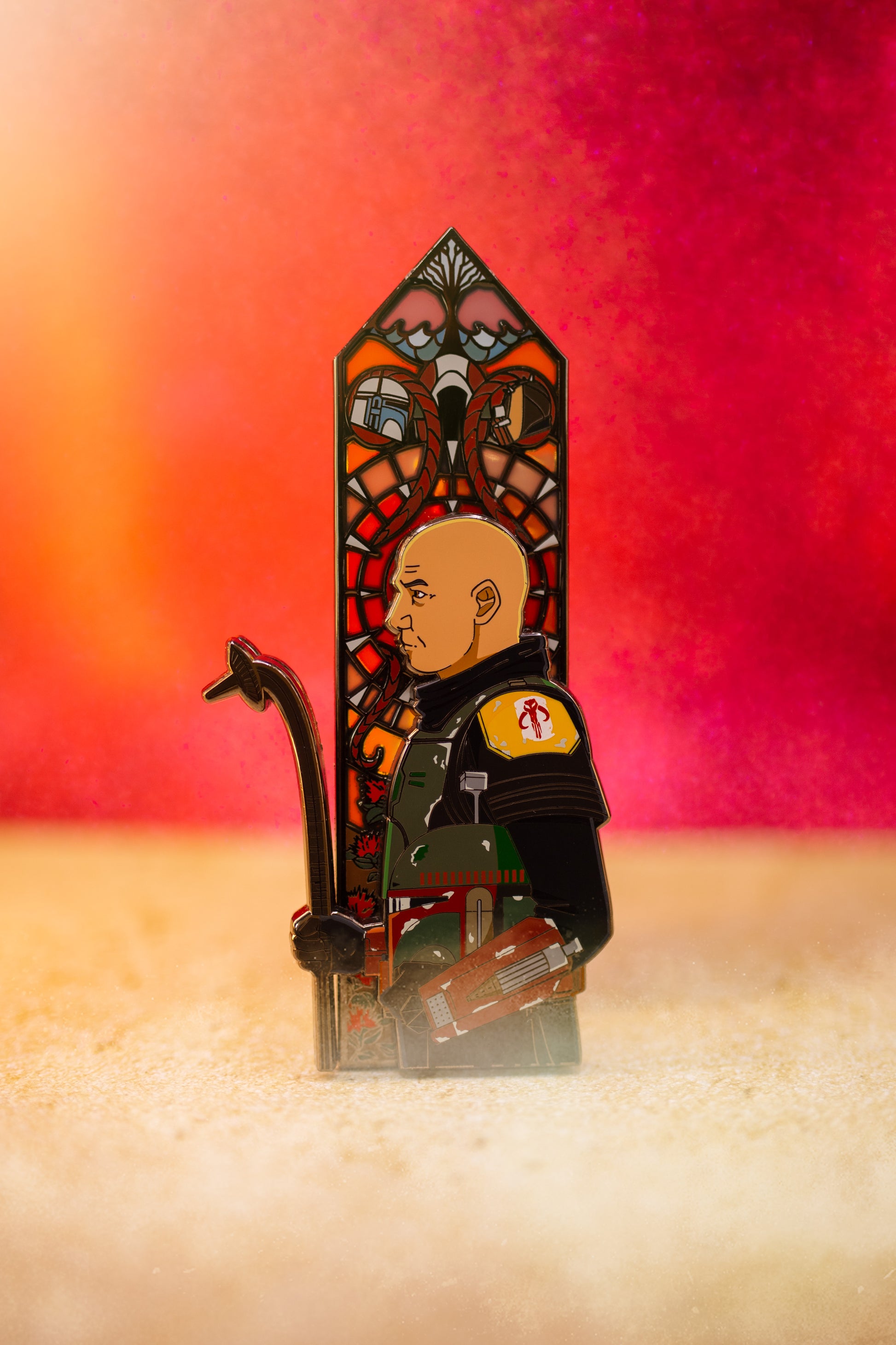THE TRIPTYCH WINDOWS SERIES: A triptych is a piece of art that is divided into three, fairly common among old stained glass installations. The goal with this series is to create enough pins of beloved SW characters for people to build their own triptych in our custom frame.