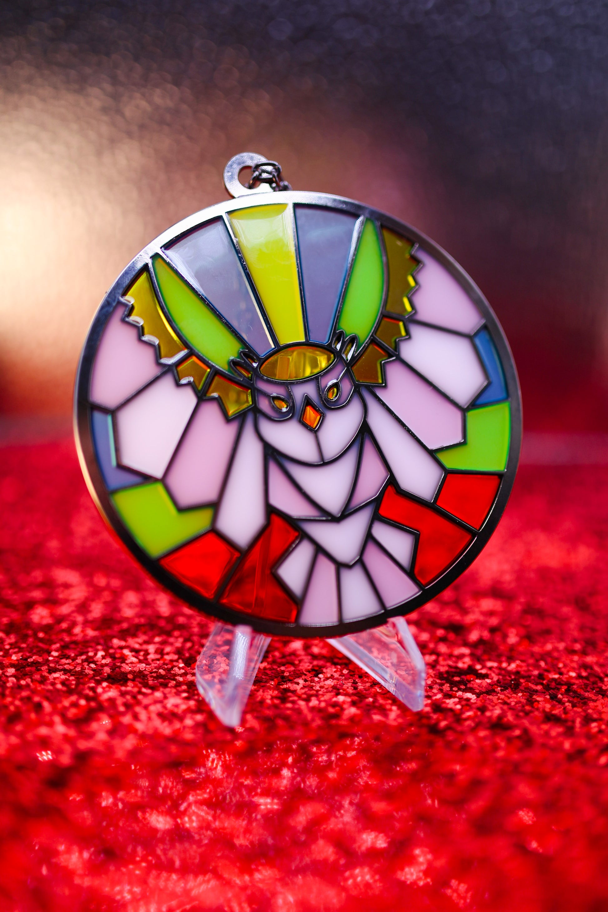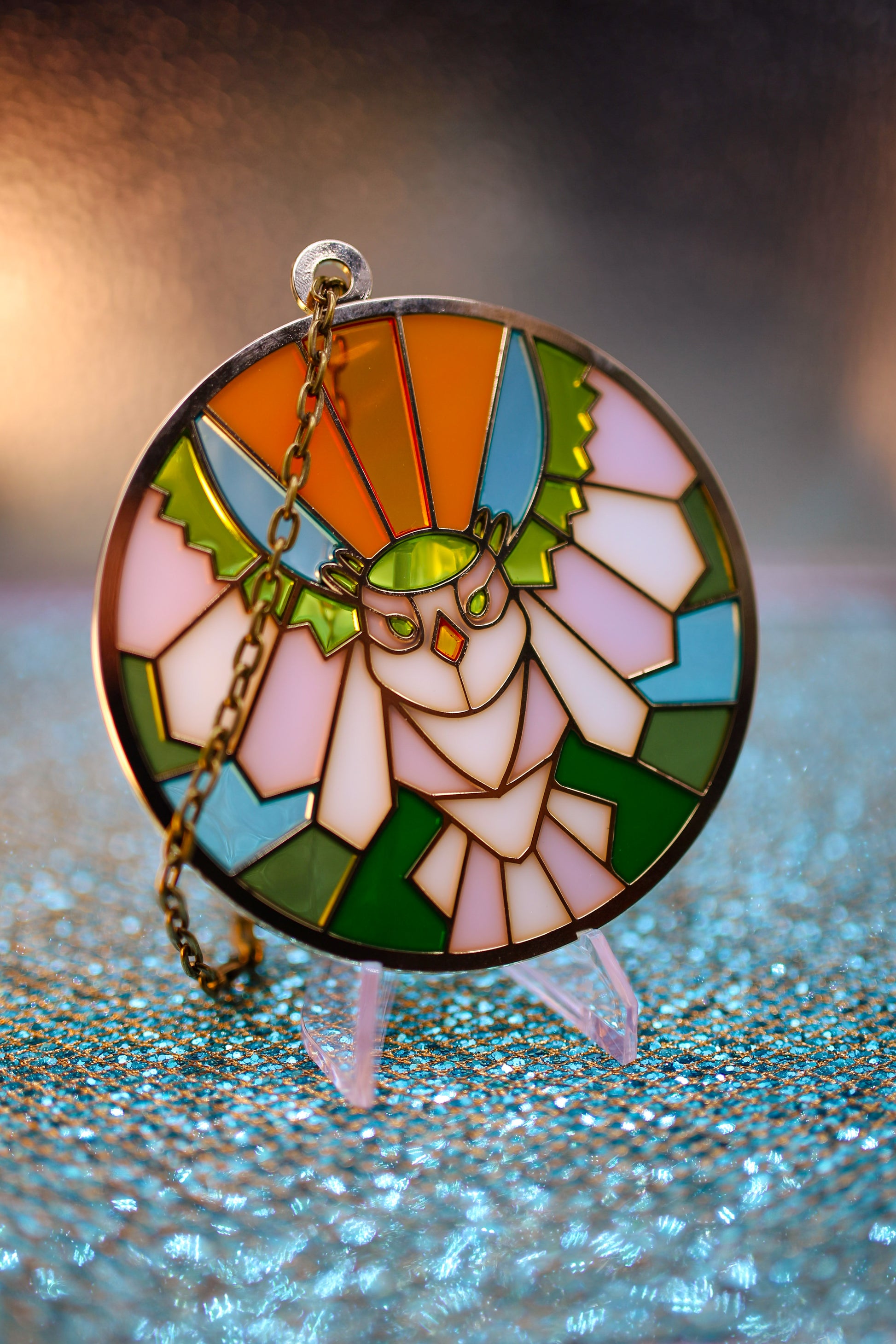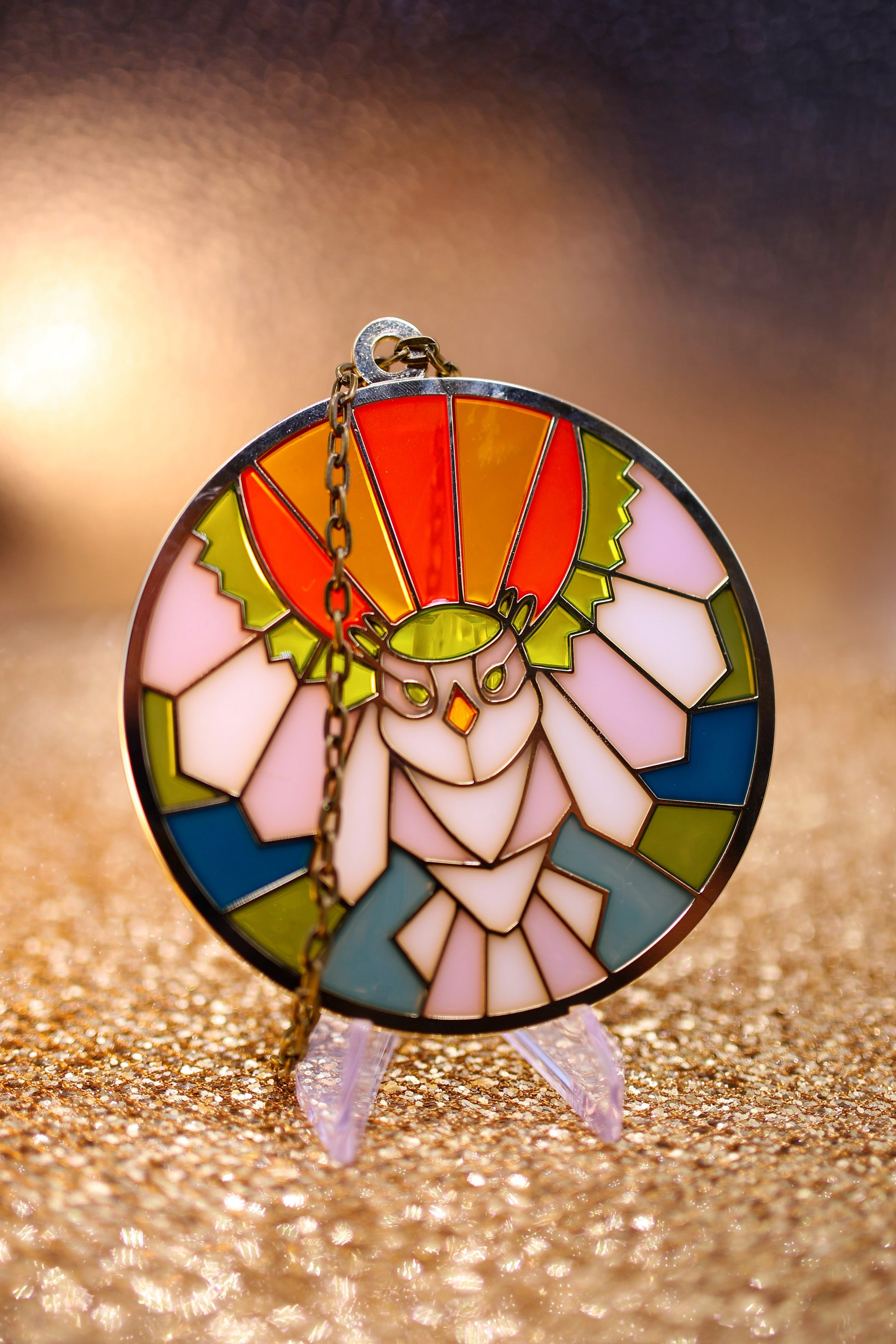 4 inch suncatchers with chain for display in windows, cars, or anywhere you could use a little extra color!