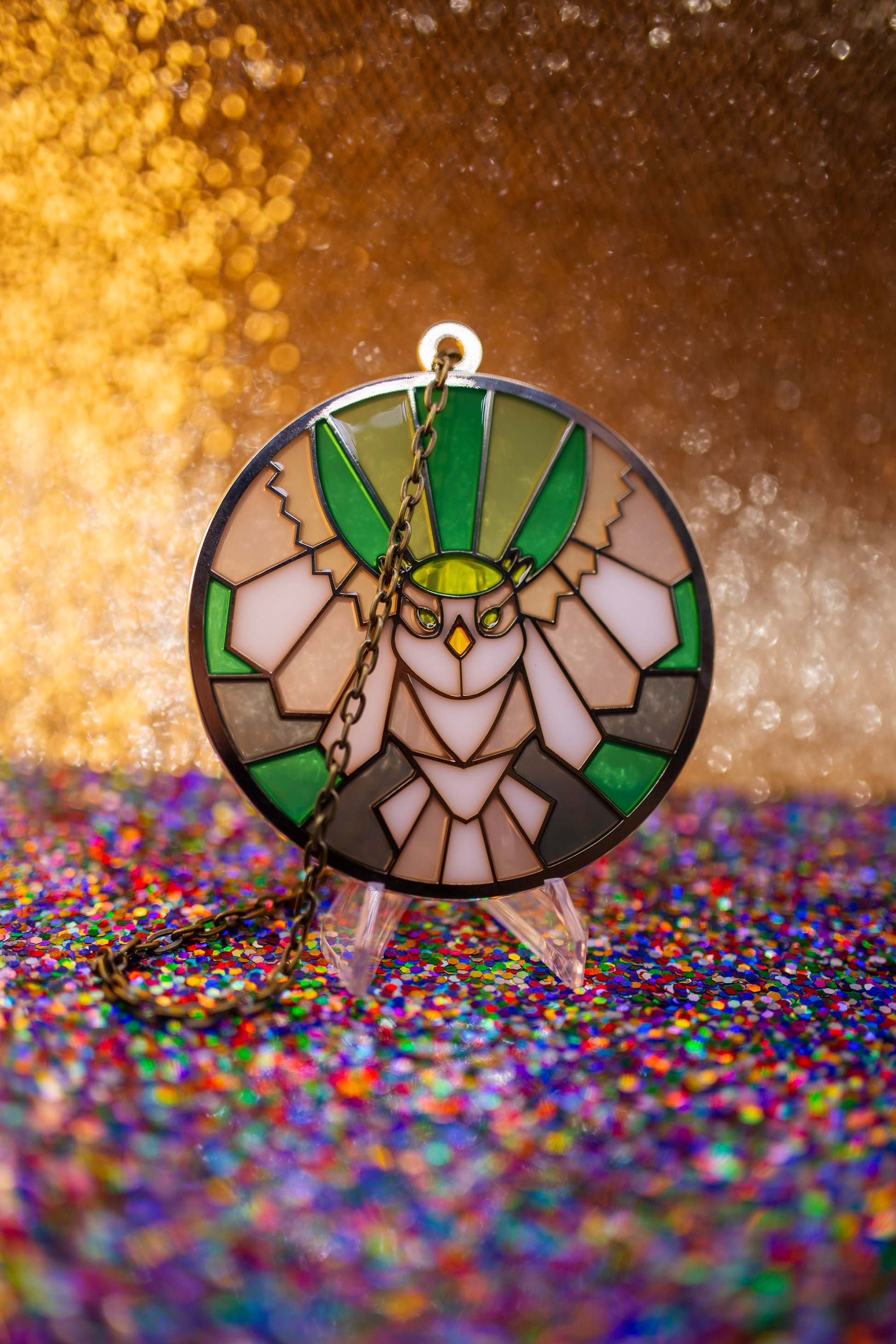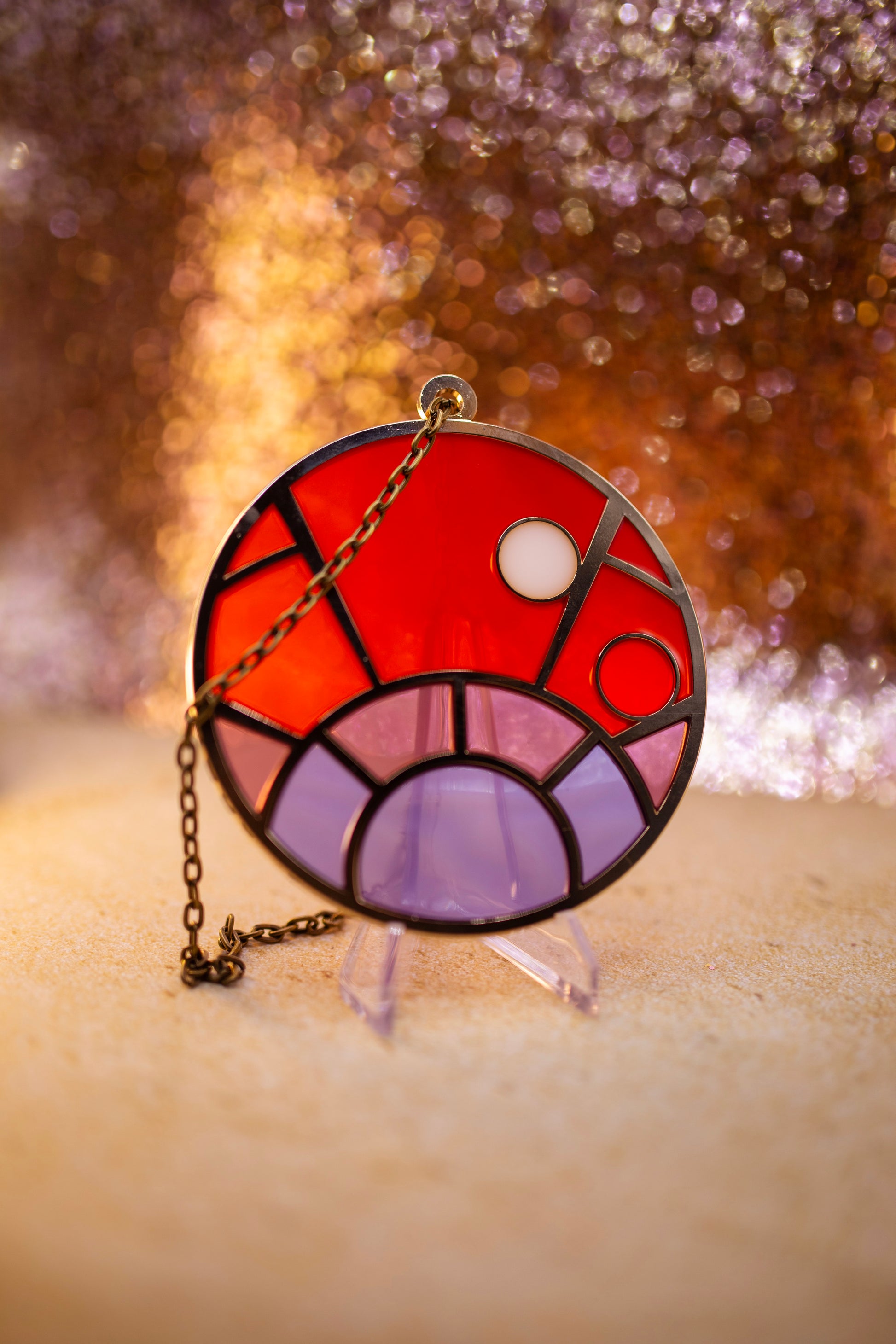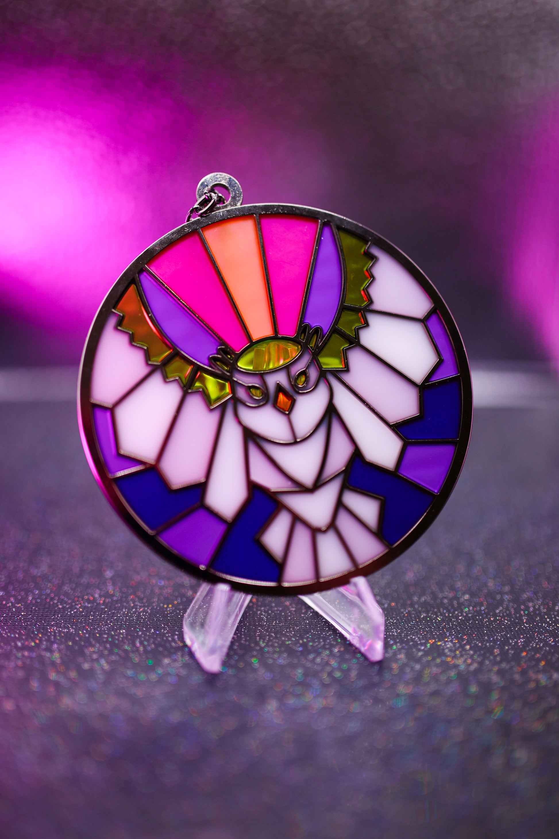 4 inch suncatchers with chain for display in windows, cars, or anywhere you could use a little extra color!