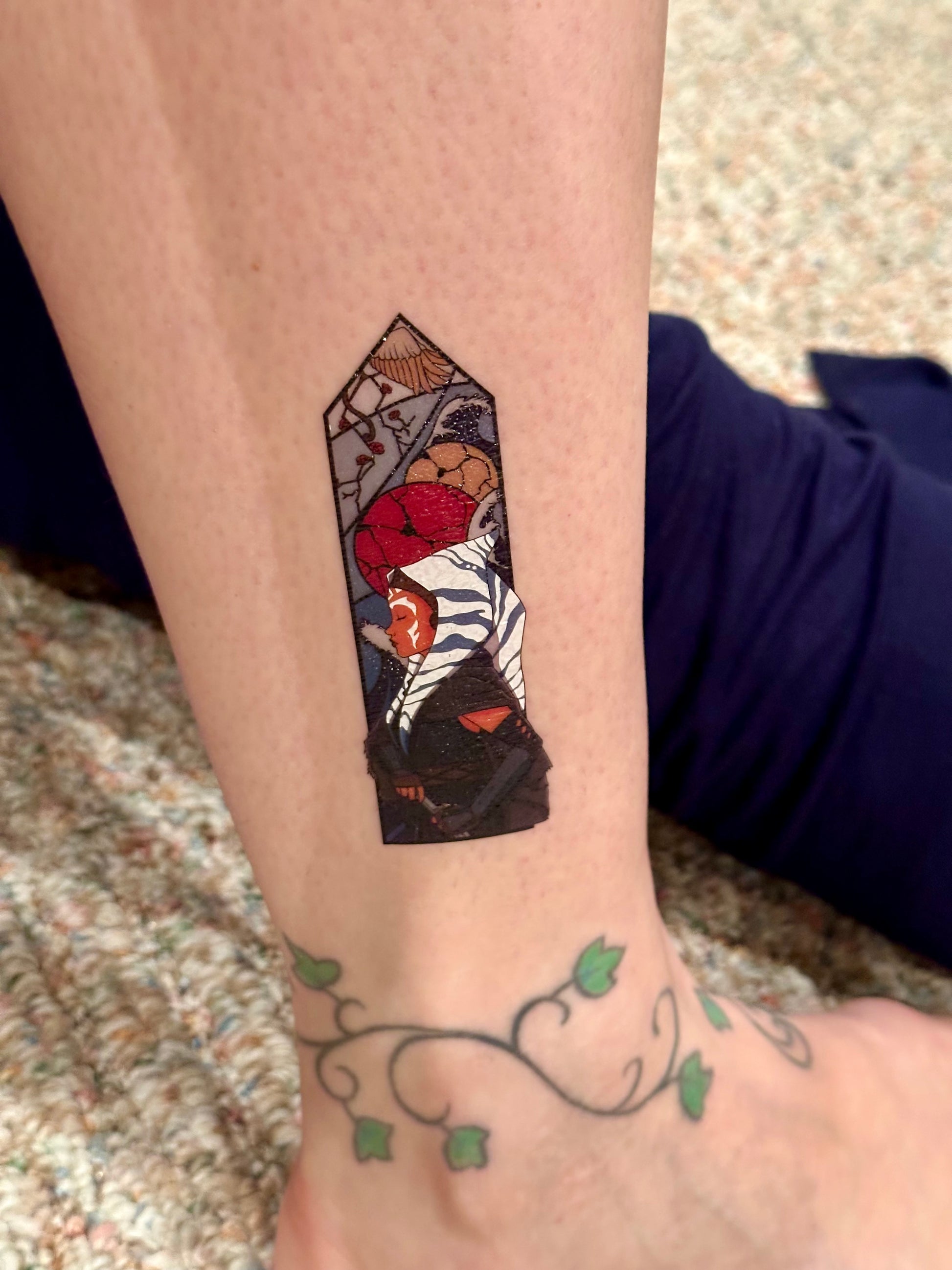 Apply by wetting the back and securing against skin. After one minute, remove backing paper to reveal the tattoo!