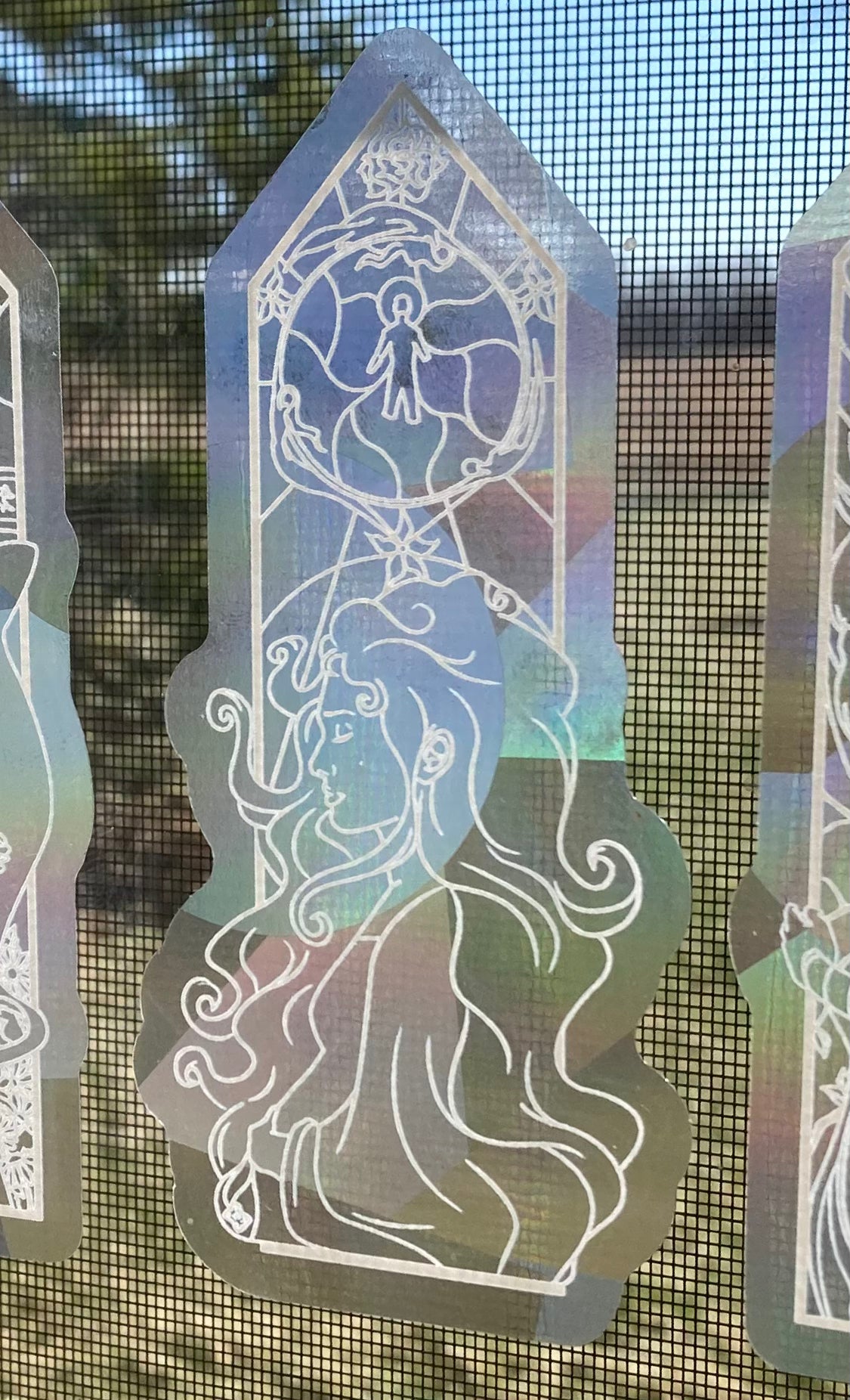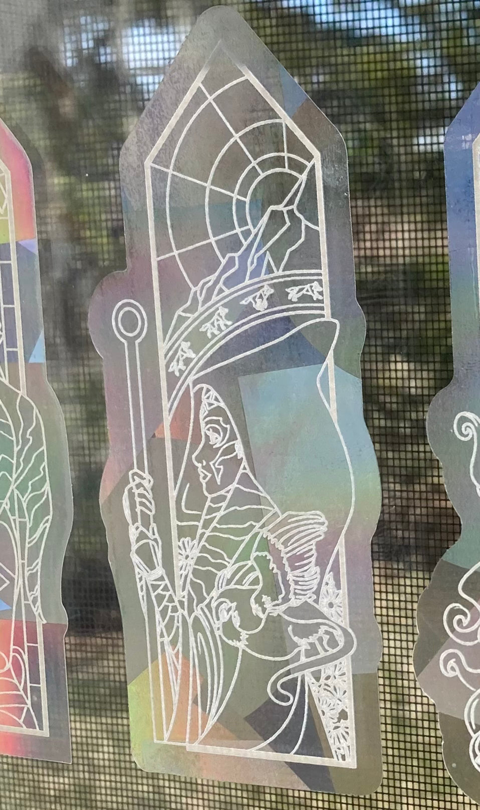 5 inch rainbow Suncatcher of our first window design, The Fulcrum!