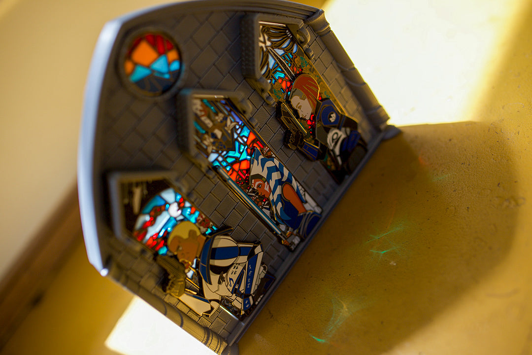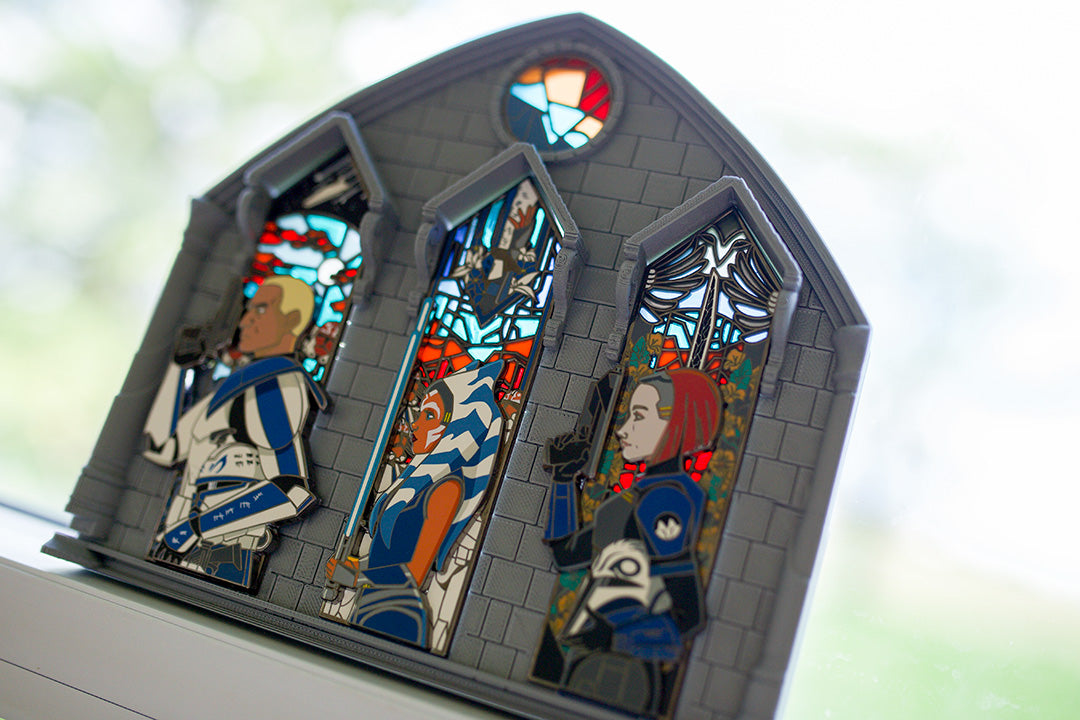 Presenting Hunter & Convor's one-of-a-kind frame, specially designed by us to accommodate any three windows from our Triptych Windows series! The frame measures roughly 9 x 7 and accommodates three of our window pins with a removable shelf that clicks into place across their base.