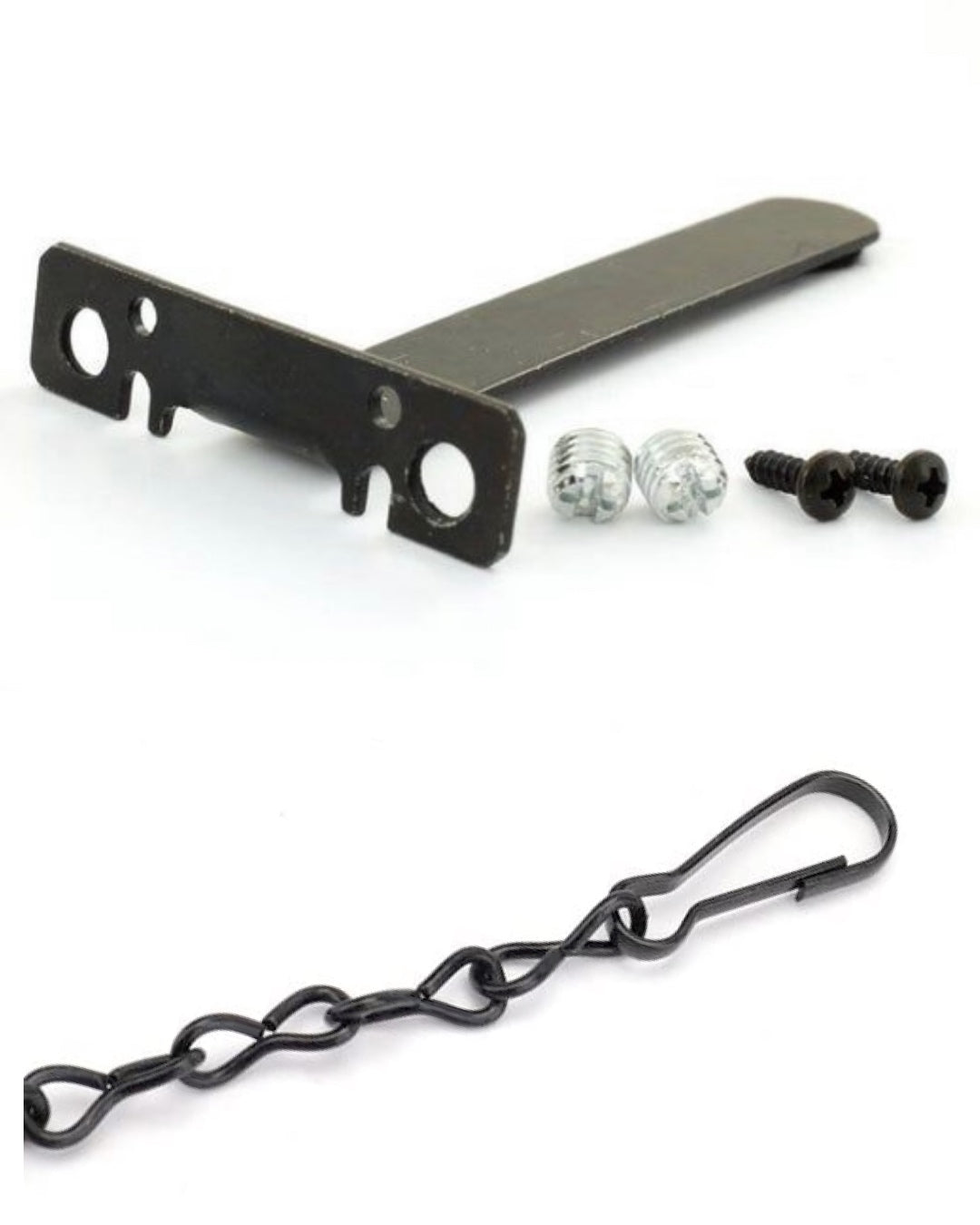 Every frame will come with black nickel hanging hardware. Optional add-ons include a metal easelmate (frame will come with pre-drilled holes) to turn your frame into a stand, and/or a coordinating clip-on chain for use with the included hangers.